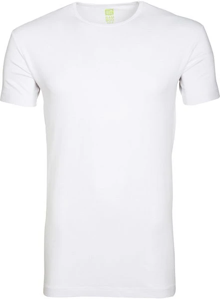 Dit witte Alan Red basic shirt heeft een O-hals en een erg getailleerde, body-fit pasvorm. Wat dit t-shirt bijzonder maakt is het materiaal. Het herenshirt is namelijk gemaakt van Bamboo Cotton en elasthaan (160 gram).