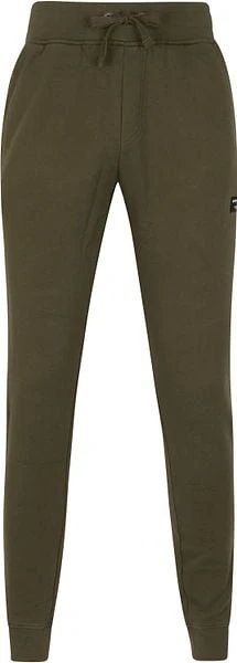Met deze tapered joggingbroek van Björn Borg haal je een trendy en comfortabele broek in huis. De herenbroek heeft een donkergroene ‘olijf’ kleur en is afgewerkt met een zwart merklogo, vier steekzakken en elastieken banden aan de uiteinden.