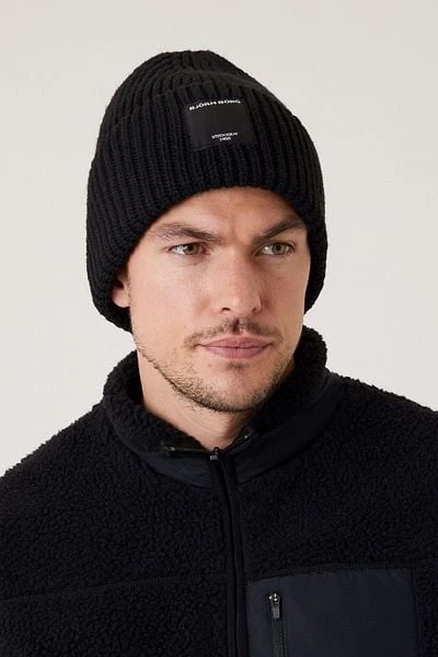 Met deze Bjorn Borg muts krijgt je outfit een stoere en sportieve twist. De herenbeanie heeft een zwarte kleur met een merklogo op de voorkant en is gemaakt van gerecycled polyester, acryl en katoen. Door het katoen krijgt de muts een zachte touch en hoog draagcomfort.Â