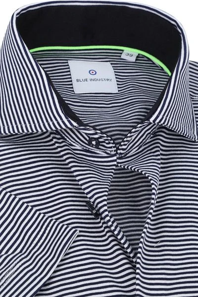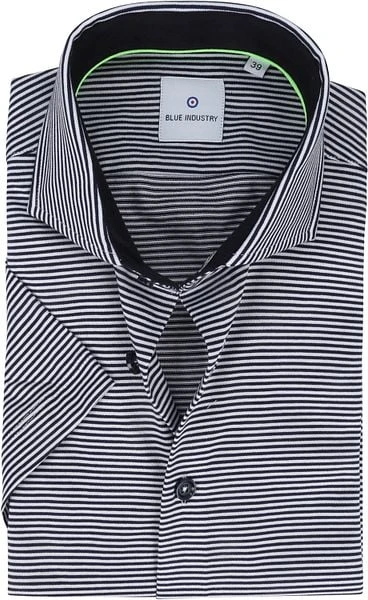 Met dit short sleeve overhemd van Blue Industry voorzie jij jouw outfit van een vrolijke touch. Het trendy herenshirt is voorzien van een subtiel blauw-wit strepen dessin in een jersey binding, waardoor het overhemd een moderne uitstraling krijgt. De widespread boord, enkele manchetten en contrasterende knopen dragen bij aan de stijlvolle uitstraling van het ss dress-shirt. Combineer het overhemd met korte mouwen op een chino voor een geklede look of draag het overhemd op een jeans voor een meer casual uitstraling.Â