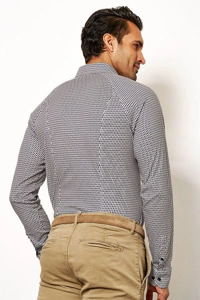 Dit overhemd van Desoto is trendy, functioneel en geeft je outfit een moderne uitstraling. Het overhemd heeft een slim-fit pasvorm en valt getailleerd om je lichaam. Daarnaast is het herenshirt volledig strijkvrij, heeft het een hoge rekbaarheid en draagcomfort. De stoffen die Desoto voor zijn herenoverhemden gebruikt zijn Oeko-Tex gecertificeerd.
