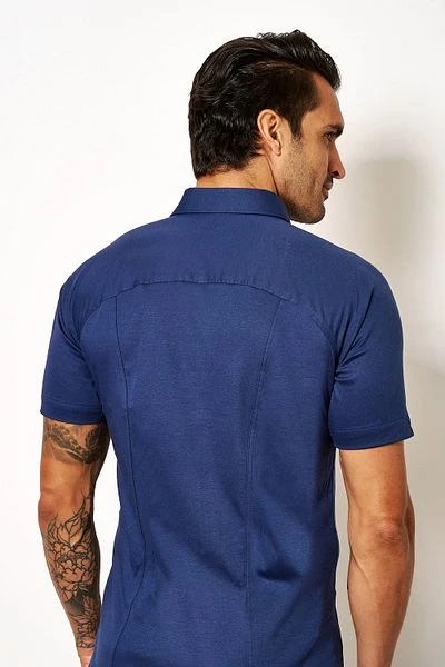 Dit zwarte overhemd van het trendy merk Desoto is een musthave voor elke fashionable man. Dit overhemd heeft een slanke pasvorm en is afgewerkt met een jersey binding, button down kraag en korte mouwen. Doordat dit herenoverhemd gemaakt is van jersey katoen biedt dit shirt extra rekbaarheid en meer bewegingsruimte. Het jersey katoen is bovendien op een hoogwaardige manier gebreid en de stoffen zijn Oeko-Tex gecertificeerd.
