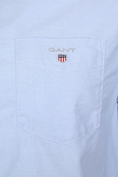Draag dit shirt van Gant en je geeft je outfit een klassieke, casual uitstraling. Het overhemd heeft een tijdloze lichtblauwe kleur, gebonden in een traditionele Oxford binding. Daarnaast is het overhemd afgewerkt met een geborduurd merklogo op de borst, een casual button down boord, enkele manchetten, een borstzakje en contrasterende lichte knopen.