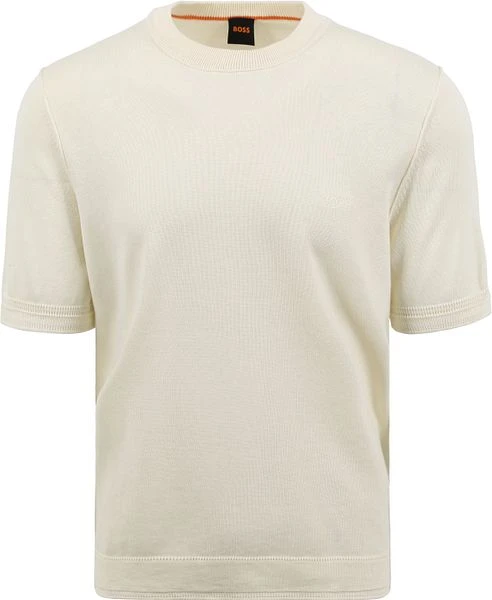 Met dit knitted shirt van Hugo Boss voorzie jij jouw outfit van een stijlvolle en moderne uitstraling. Dit T-shirt heeft een Regular-Fit pasvorm en valt recht om je bovenlichaam. Het shirt heeft een gebreide structuur, is wat dikker en heeft een ‘inside-out-look’ door de opliggende naden. Ook heeft het shirt een structuur op de boorden op de mouwen en aande onderzijde. Daarnaast is het t-shirt gemaakt van katoen en kashmir, waardoor het een zachte touch krijgt, comfortabel draagt en je van voldoende warmte voorziet.Â