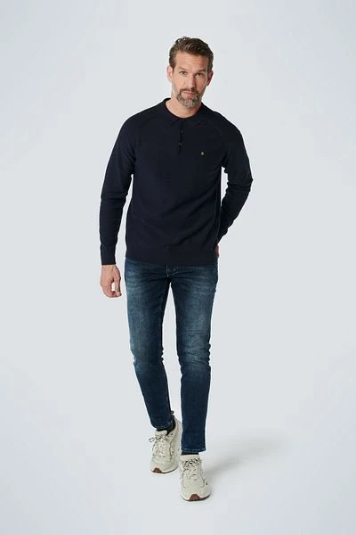 Met deze trendy long sleeve polo van No-Excess voorzie jij jouw outfit van een modieuze uitstraling. Deze herenpolo heeft een licht getailleerde Modern-Fit pasvorm en is gemaakt van katoen. Daardoor krijg het poloshirt een zachte touch, is deze vormvast en erg comfortabel en biedt deze voldoende bewegingsruimte. Â