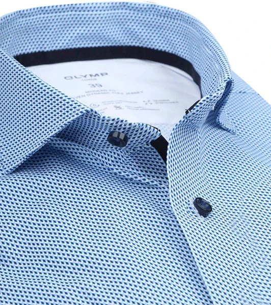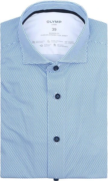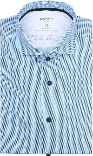 Het OLYMP 24/Seven Shirt is net zo comfortabel als een t-shirt, en net zo stijlvol als een overhemd. Het modische shirt heeft een licht getailleerde pasvorm en is gemaakt van een zachte, elastische en vormbestendige jersey binding. Daarnaast is het shirt voorzien van een kent boord, enkele manchetten en bijpassende donkergekleurde knopen. Dit Luxor overhemd valt onder het Green Choice label, wat betekent dat het product duurzaam en verantwoord is geproduceerd en het Oeko-Tex en BCI-certificaat bevat.