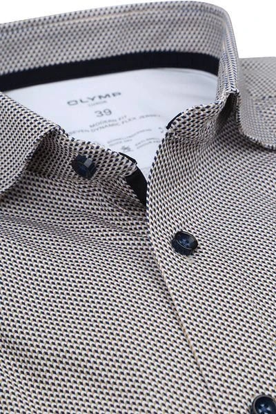 Met dit Olymp shirt kom je altijd goed voor de dag op elke gelegenheid. Dit shirt van Olymp heeft een Modern Fit pasvorm en valt licht getailleerd om je lichaam. Dit shirt is gemaakt van katoen, waardoor het een ademend, slijtvast en zacht overhemd is. Daarnaast is het sneldrogend, bevat het stretch, is het makkelijk te strijken en is het geur absorberend. Het overhemd is zowel formeel als informeel te dragen.Â