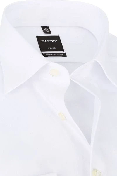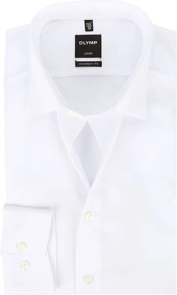 Met dit overhemd uit de Luxor Modern-Fit (MF) collectie van OLYMP ben je klaar voor elke speciale gelegenheid. Dit shirt heeft een wit effen dessin en is voorzien van dubbele manchetten en een widespread boord. Dit zorgt ervoor dat het overhemd erg geschikt is voor verschillende gelegenheden.