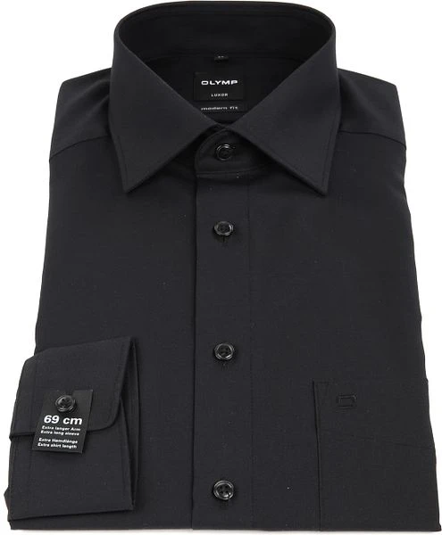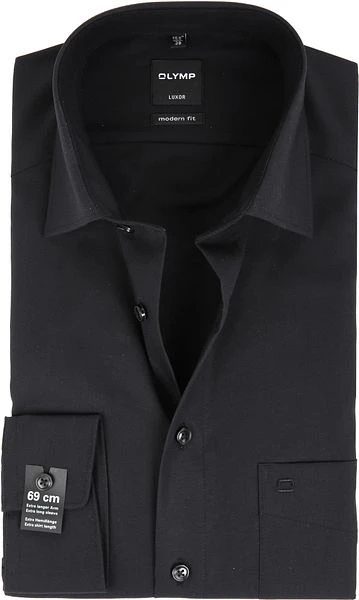 Dit zwart Olymp Luxor overhemd kun je makkelijk combineren. Doordat het hemd een modern-fit pasvorm heeft, bestaat uit 100% katoen en is gemaakt van kreuk- en strijkvrij katoen, draagt het zeer comfortabel. Het overhemd is voorzien van een kent boord en SL7 (extra lang) mouwen.