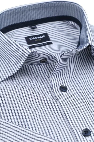 Met dit Olymp shirt kom je altijd goed voor de dag op elke gelegenheid. Dit shirt van Olymp heeft een Modern Fit pasvorm en valt licht getailleerd om je lichaam. Dit shirt is gemaakt van katoen, polyester en elasthaan, waardoor het een ademend, slijtvast en zacht overhemd is. Daarnaast is het sneldrogend, bevat het stretch, is het makkelijk te strijken en is het geur absorberend. Het overhemd is zowel formeel als informeel te dragen.Â