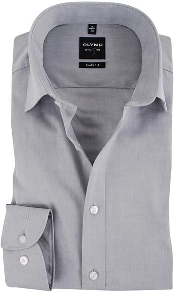 Dit grijze overhemd van Olymp is afkomstig uit de Level 5 collectie. Deze collectie overhemden staat bekend om de strakke, body-fit pasvorm die getailleerd langs het lichaam valt. De overhemden met body-fit pasvorm zijn dan ook zeer geschikt voor mannen met een slank postuur.
