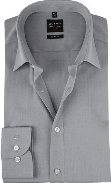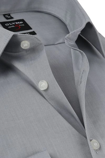 Een Olymp overhemd uit de Level 5 collectie, die bekend staat om haar stijlvolle herenshirts en een mooie slanke pasvorm. Dit overhemd heeft een trendy grijze kleur, waardoor je outfit zowel een moderne maar ook klassieke uitstraling krijgt.Â