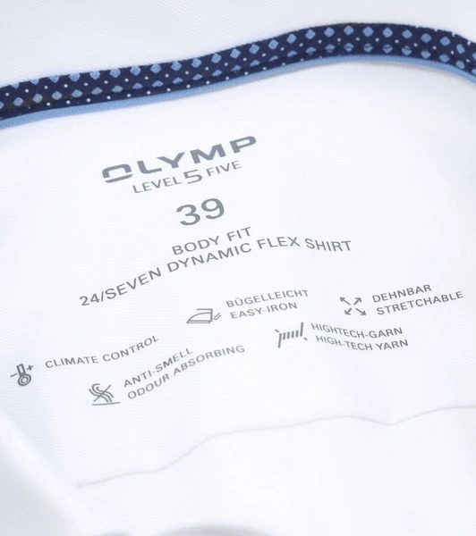 Het OLYMP Luxor 24/7 overhemd is zo comfortabel als een T-shirt en zo stijlvol als een overhemd. Het modische shirt heeft een body-fit pasvorm, wat wij bij Suitable verstaan als Slim-Fit, en is gemaakt van een zachte, elastische en vormbestendige jersey. Daarnaast is het shirt voorzien van een kent boord en bijpassende donkergekleurde knopen. Het shirt is gemaakt van katoen, polyester en elastaan (stretch), wat er voor zorgt dat dit overhemd ademend, vormvast en huidvriendelijk is.