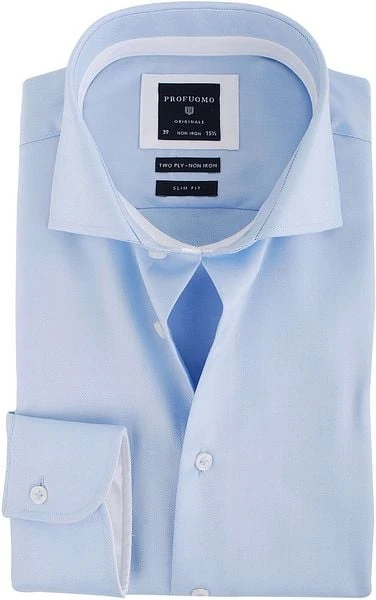 Profuomo overhemden zijn van 100% katoen gemaakt, top kwaliteit en ze hoeven niet gestreken te worden, ideaal! Een uniek en strijkvrij overhemd, gemakkelijk te combineren met een kostuum, colbert of op een favoriete jeans. Dit overhemd heeft een two-ply binding, een 1 knoops hoge cut-away boord en heeft een wit contrast in de manchetten en de kraag.