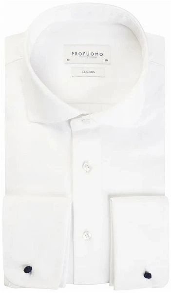 Door de dubbele manchet in dit dress shirt heeft u een zeer elegant overhemd in uw collectie, ideaal voor speciale gelegenheden. Dit Profuomo overhemd is van strijkvrij katoen in een 2-ply twill binding, waardoor het shirt een fraaie weefstructuur krijgt en zacht op de huid draagt. De witte knoop geeft het dress shirt een chique uitstraling. De boord op dit Profuomo shirt is een cutaway kraag, zeer geschikt voor het dragen met een stijlvolle stropdas.
