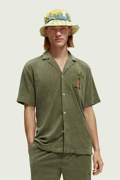 Met dit stijlvolle overhemd van Scotch en Soda geef jij jouw outfit een modieuze touch. Het overhemd heeft een Regular-Fit pasvorm die ruim om je lichaam valt. Het shirt is afgewerkt in badstof en is voorzien van een geborduurde print op de borst. Daarnaast is het overhemd gemaakt van organisch katoen en polyester, waardoor het shirt luchtig draagt, duurzaam is en comfortabel draagt.Â