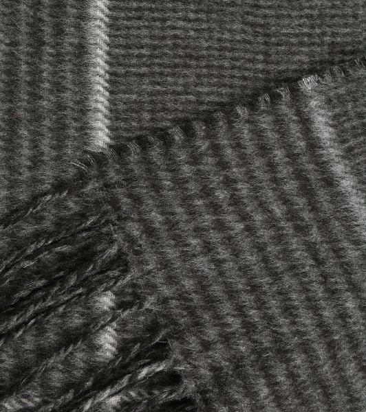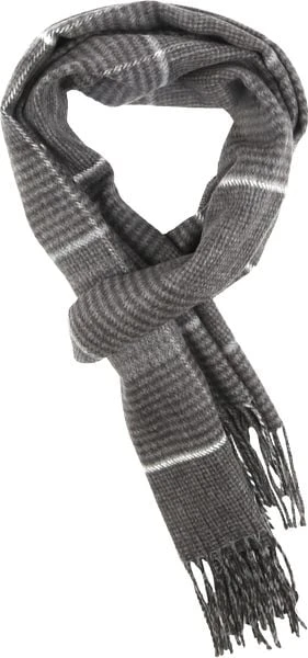 De zachte heren sjaal van Suitable heeft een kleurenpalet van zwarte en grijze tinten en door zijn lengte op vele manieren te dragen. De sjaal heeft een ruit dessin met op de uiteindes franjes.
