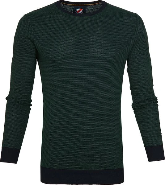 Met deze Bince pullover van Suitable kom je overal stijlvol voor de dag, of je nu naar je werk of een casual gelegenheid gaat. De herentrui heeft een weving van donkerblauwe en donkergroene garen wat zorgt voor een trendy uitstraling. Daarnaast is de sweater voorzien van een ronde hals en elastische uiteinde van de mouwen.
