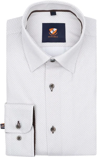 Met dit overhemd van Suitable haal je een dress-shirt in huis die je outfit een modische twist geeft. Het shirt heeft een stijlvolle beige kleur en een subtiele print. De trendy widespread boord, enkele manchetten en lichtgekleurde knopen, zorgen ervoor dat het overhemd een overall modische, casual look krijgt.Â