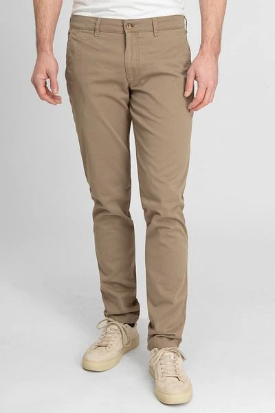 Met deze Plato chino van Suitable haal jij een broek in huis voor zowel casual als formele gelegenheden. De chino heeft een slanke pasvorm en valt getailleerd om je bovenbenen. Daarnaast voelt de broek zeer stevig aan en is wat dikker door de heavy twill binding. Daardoor is deze broek zeer geschikt voor frissere dagen.Â