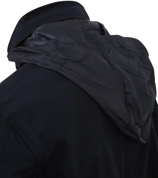 Met deze jas van Suitable ga je zowel trendy als comfortabel de deur uit. Het jack heeft een stijlvolle donkerblauwe kleur en is afgewerkt met een opstaande kraag, uitvouwbare capuchon en ritssluiting. Daarnaast is de jas voorzien van een twee steekzakken met ritssluiting, een borstzak en vier binnenzakken. De jas is gemaakt van nylon en stretch en beschermd je op deze manier goed tegen verschillende weerstomstandigheden.Â