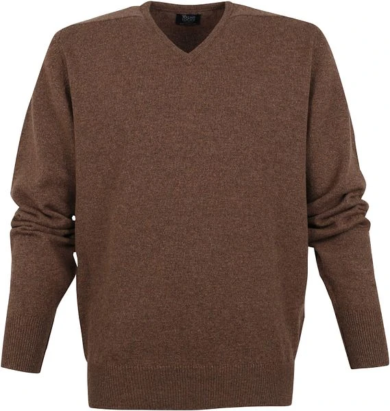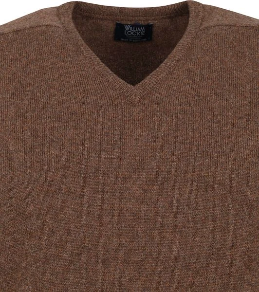 Met deze pullover van William Lockie combineer je hoge kwaliteit, veel comfort en een tijdloze uitstraling. De herentrui heeft een bruine kleur en is voorzien van een v-hals. het subtiele gemêleerde dessin krijgt de pullover door het gebruik van mouliné garen, die qua kleur subtiel van elkaar afwijken. Combineer de wollen trui met een overhemd en chino of draag hem op jouw favoriete jeans.Â